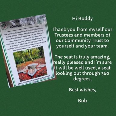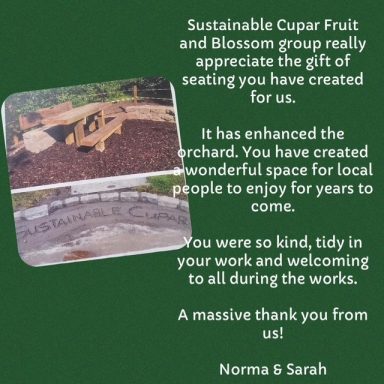 Kilmany Horticultural Services has been proudly supporting local communities through a growing programme of community donations across Fife. In recent years, the company has installed unique, handcrafted outdoor seating in Ceres, Cupar, and Strathkinness, helping to enhance public spaces for residents and visitors alike.