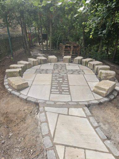In Ceres, our Cross Seat is located along the Pilgrim’s Way, in the car park beside the museum. In Cupar, our seating can be found on Orchard Walk, just off the Common. We have also created a unique prayer circle at St Columba’s RC Primary School, inspired by the fourteen Stations of the Cross. This space has been especially well received, becoming a meaningful and much-used feature for the children, who engage with it both reflectively and socially as part of their school life.